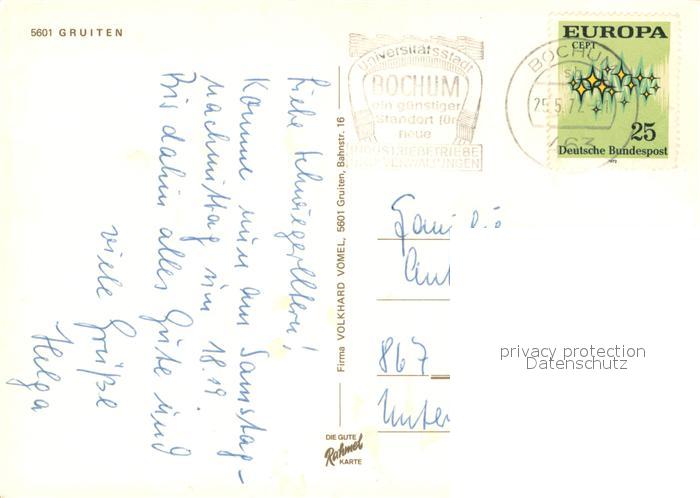 73683047 alte Postkarte Gruiten St Nikolaus Kirche mit Pfarrhaus Bahnstrasse postalisch gelaufen Erhaltung siehe scans [WerneD78] KatCode: 11110005158008