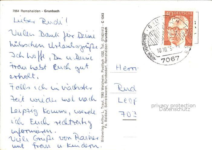 72515558 alte Postkarte Grunbach Remshalden Fliegeraufnahme postalisch gelaufen Erhaltung siehe scans KatCode: 11110008119090