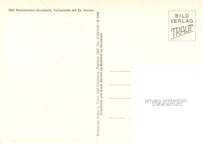 73182827 Grunbach Remshalden Teilansicht mit Ev Kirche postalisch nicht gelaufen Erhaltung siehe scans [WerneD78] KatCode: 11110008119090