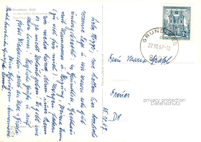73100456 alte Postkarte Grundlsee Steiermark Fliegeraufnahme postalisch gelaufen Erhaltung siehe scans [NatalD47] KatCode: 11390222061215