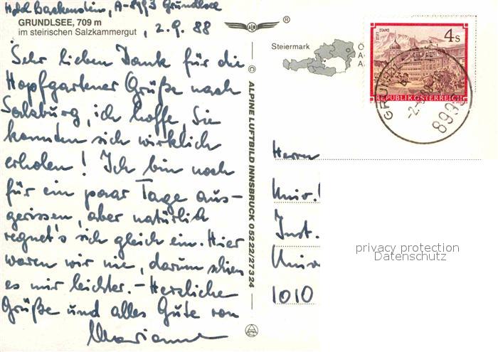 72899311 alte Postkarte Grundlsee Steiermark Fliegeraufnahme postalisch gelaufen Erhaltung siehe scans [NatalD47] KatCode: 11390222061215