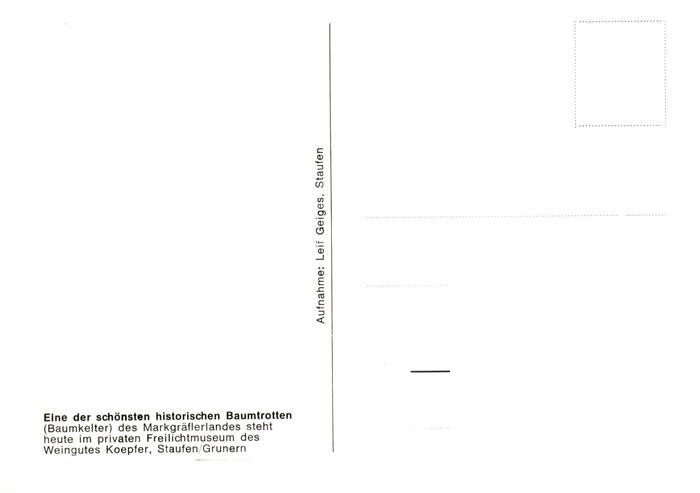 73881907 Grunern Staufen Breisgau Historische Baumtrotten Baumkelter im Freilichtmuseum des Weingutes Koepfer postalisch nicht gelaufen Erhaltung siehe scans [FriedD77] KatCode: 11110008315108