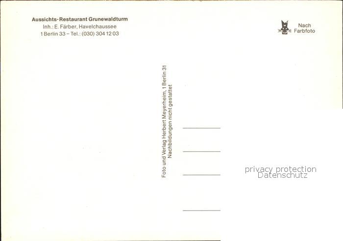 72547785 Grunewald Berlin Aussichts Restaurant Grunewaldturm postalisch nicht gelaufen Erhaltung siehe scans [LiesaD40 kv019box] KatCode: 11110011000000