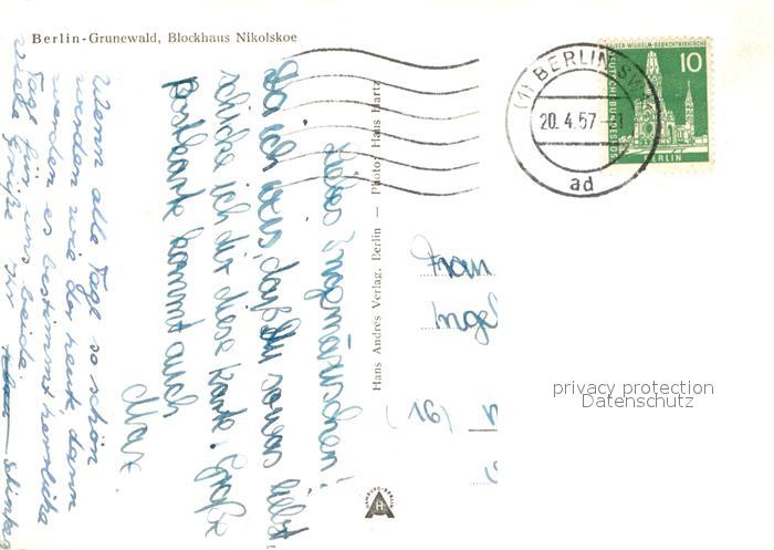 72957122 alte Postkarte Grunewald Berlin Blockhaus Nikolskoe postalisch gelaufen Erhaltung siehe scans [PaolaD17] KatCode: 11110011000000