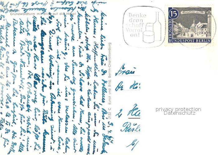 73024492 alte Postkarte Grunewald Berlin Grunewaldturm mit Havel postalisch gelaufen Erhaltung siehe scans [WerneD78] KatCode: 11110011000000