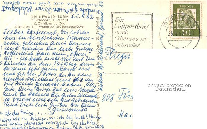 73041908 alte Postkarte Grunewald Berlin Grunewaldturm postalisch gelaufen Erhaltung siehe scans [PaolaD17] KatCode: 11110011000000