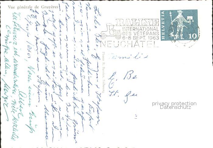 11646922 alte Postkarte Gruyeres FR Vue generale postalisch gelaufen Erhaltung siehe scans KatCode: 11470070265146