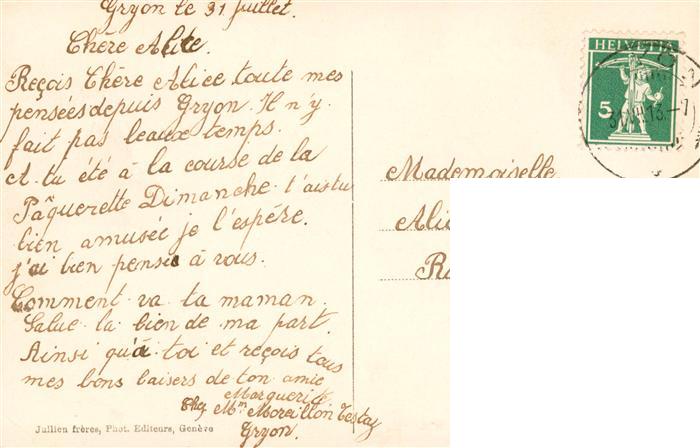 13970476 alte Postkarte Gryon VD Vue générale les Diablerets et Argentine Alpes postalisch gelaufen Erhaltung siehe scans [FriedD77] KatCode: 11470240755792