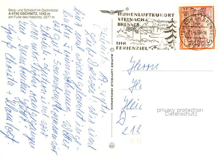 73291266 alte Postkarte Gschnitz Tirol Fliegeraufnahme postalisch gelaufen Erhaltung siehe scans [LiesaD40] KatCode: 11390332070317