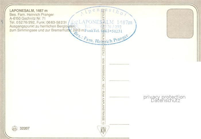 73319522 Gschnitz Tirol Laponesalm Bergbach Alpen postalisch nicht gelaufen Erhaltung siehe scans [FriedD77] KatCode: 11390332070317
