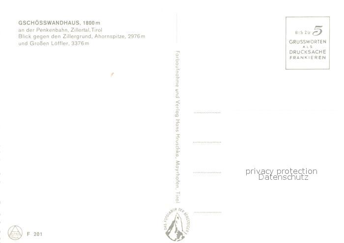 73028911 Gschoesswandhaus Zillergrund Ahornspitze Grosser Loeffler postalisch nicht gelaufen Erhaltung siehe scans [PaolaD17] KatCode: 11390335070908