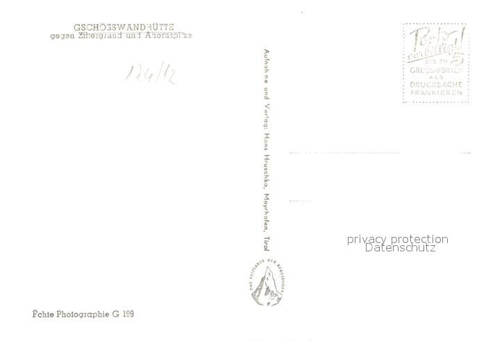 72945020 Gschoesswandhuette Zillertal gegen Zillergrund und Ahornspitze Zillertaler Alpen postalisch nicht gelaufen Erhaltung siehe scans [FriedD77] KatCode: 11390335070920