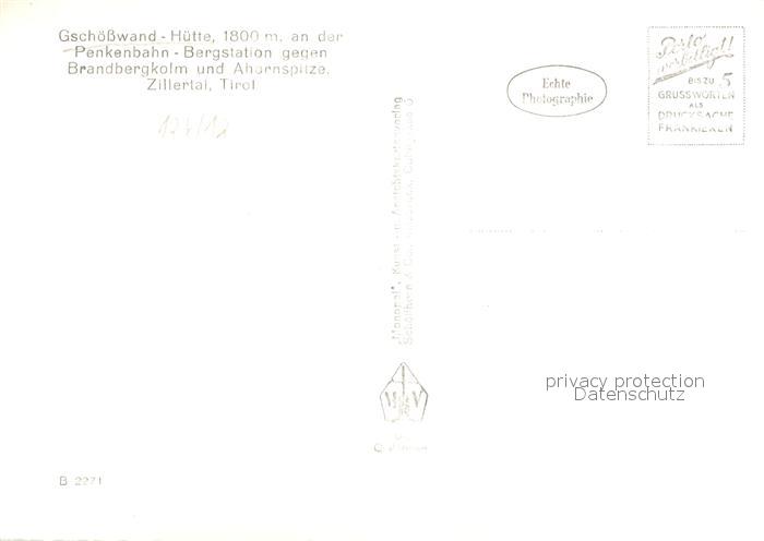 72945019 Gschoesswandhuette Zillertal Penkenbahn Bergstation gegen Brandbergkalm und Ahornspitze Zillertaler Alpen postalisch nicht gelaufen Erhaltung siehe scans [FriedD77] KatCode: 11390335070920