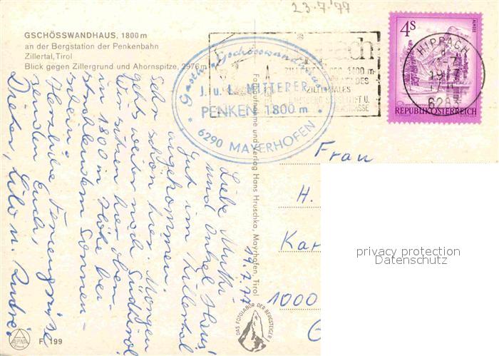 72913807 alte Postkarte Gschoesswandhuette Zillertal Zillergrund Ahornspitze postalisch gelaufen Erhaltung siehe scans [KathaD81] KatCode: 11390335070920