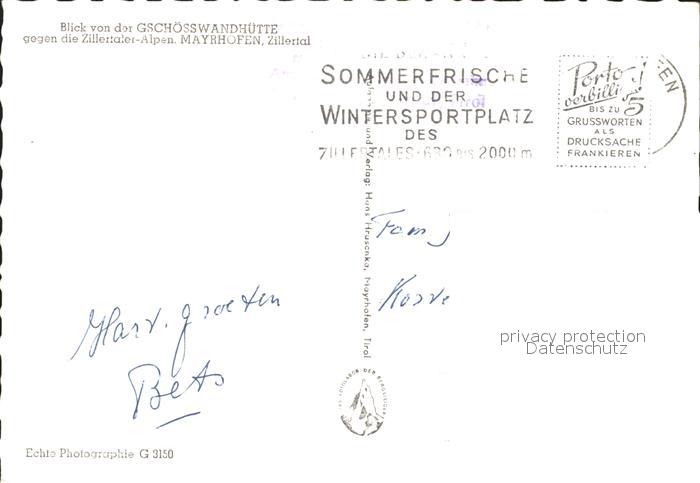 11923884 alte Postkarte Gschoesswandhuette Zillertal Zillertaler Alpen postalisch gelaufen Erhaltung siehe scans KatCode: 11390335070920