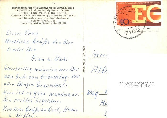 72071254 alte Postkarte Gschwand Hotel Pension Cafe Hoetzinger postalisch gelaufen Erhaltung siehe scans KatCode: 11110009372126