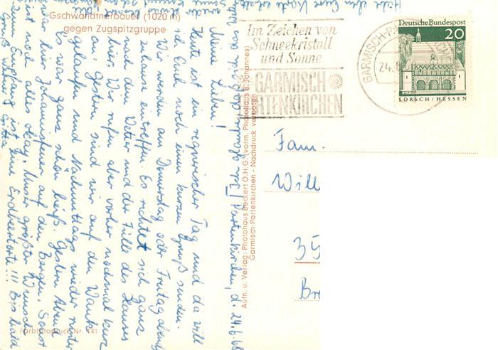 73946273 Gschwandtnerbauer 1020m Garmisch-Partenkirchen mit Zugspitzgruppe postalisch gelaufen Erhaltung siehe scans [WerneD78] alte Postkarte Wern Katcode 11110009180117