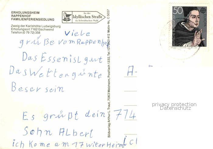 72896185 alte Postkarte Gschwend Backnang Erholungsheim Rappenhof postalisch gelaufen Erhaltung siehe scans [KathaD81] KatCode: 11110008119008