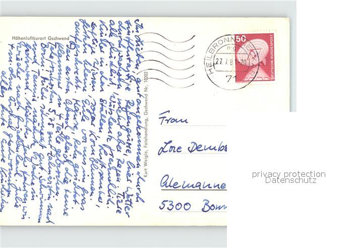 72432094 alte Postkarte Gschwend Backnang Panorama postalisch gelaufen Erhaltung siehe scans KatCode: 11110008119008