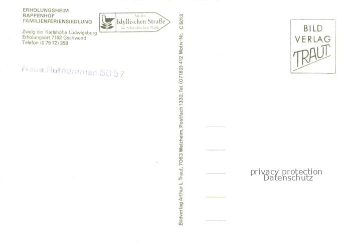 74027565 Gschwend Gaildorf Erholungsheim Rappenhof Feriensiedlung im Winterzauber postalisch nicht gelaufen Erhaltung siehe scans [FriedD77] KatCode: 11110008136027
