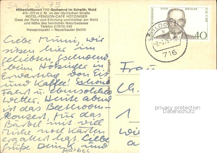 71909257 alte Postkarte Gschwend Gaildorf Hotel Cafe Hoetzinger postalisch gelaufen Erhaltung siehe scans KatCode: 11110008136027