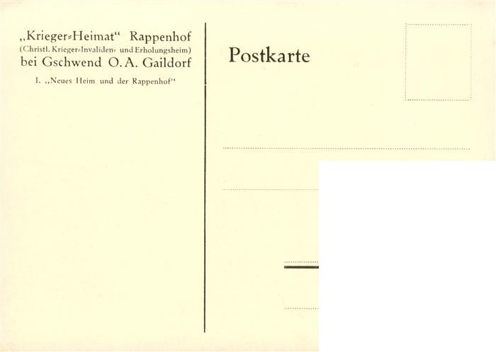 73873497 Gschwend Gaildorf Krieger Heimat Rappenhof postalisch nicht gelaufen Erhaltung siehe scans [FriedD77] KatCode: 11110008136027