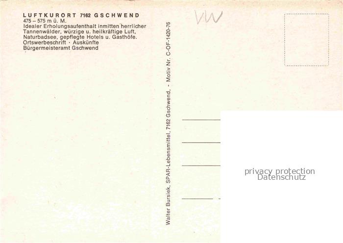 74104182 Gschwend Gaildorf Ostalbkreis BW Stadtzentrum Hauptstrasse Kirche postalisch nicht gelaufen Erhaltung siehe scans [FriedD77] KatCode: 11110008136027