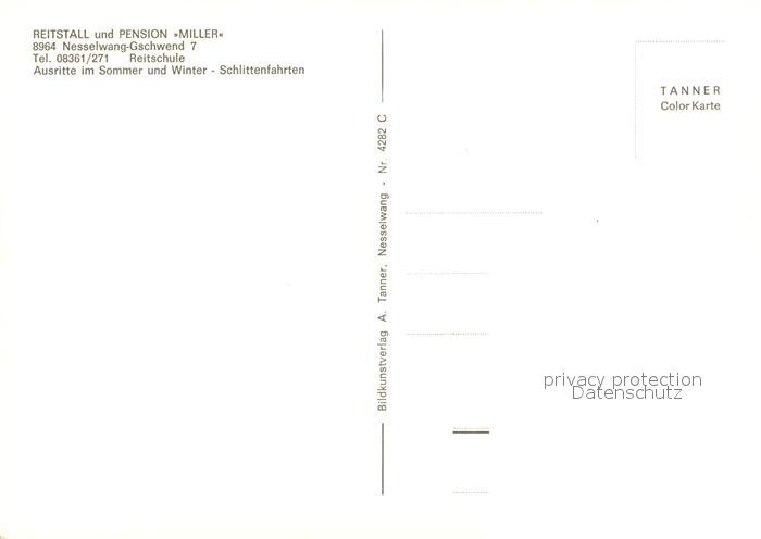 73086656 Gschwend Nesselwang Reitstall Miller postalisch nicht gelaufen Erhaltung siehe scans [NatalD47] KatCode: 11110009777153