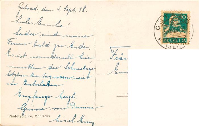 13919570 alte Postkarte Gstaad BE Panorama mit Alpenblick postalisch gelaufen Erhaltung siehe scans [WerneD78] KatCode: 11470060220620