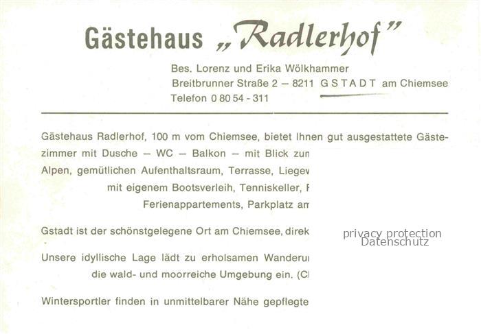 74137753 Gstadt Chiemsee Bayern Gaestehaus Radlerhof Blumenschmuck postalisch nicht gelaufen Werbekarte (keine Postkarte) Erhaltung siehe scans [FriedD77] KatCode: 11110009187138