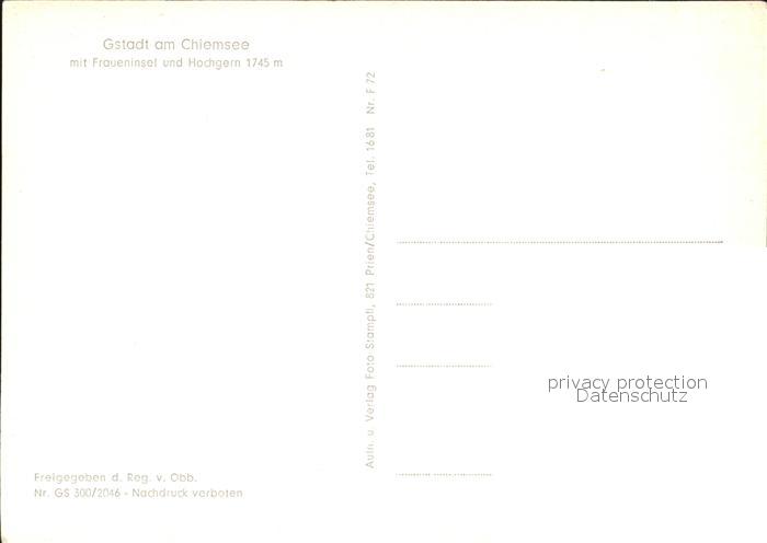 72524014 Gstadt Chiemsee Fliegeraufnahme mit Fraueninsel postalisch nicht gelaufen Erhaltung siehe scans KatCode: 11110009187138