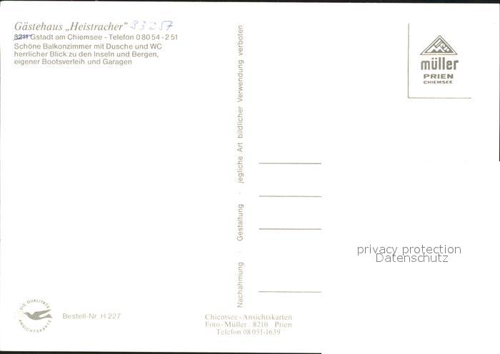 71929532 Gstadt Chiemsee Gaestehaus Heistracher Hochgern Kampenwand Heistracher postalisch nicht gelaufen Erhaltung siehe scans KatCode: 11110009187138