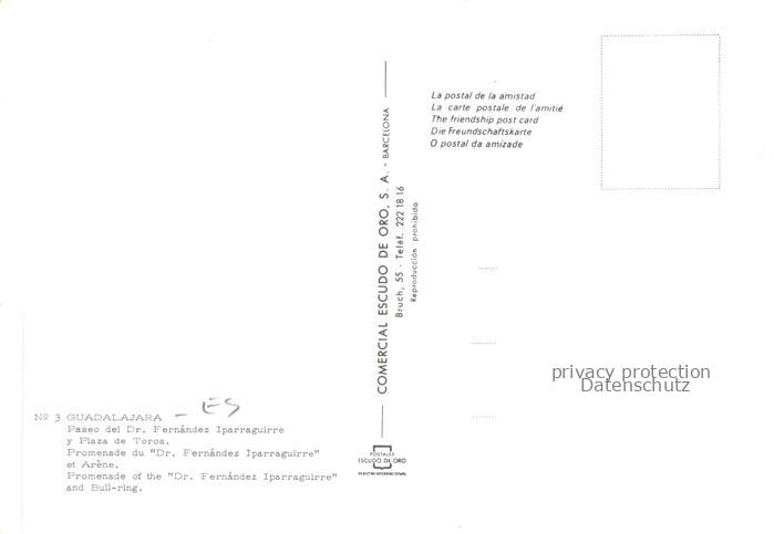 74100802 Guadalajara Castilla La Mancha ES Paseo del Dr. Fernández Iparraguirre y Plaza de Toros postalisch nicht gelaufen Erhaltung siehe scans [FriedD77] KatCode: 11510