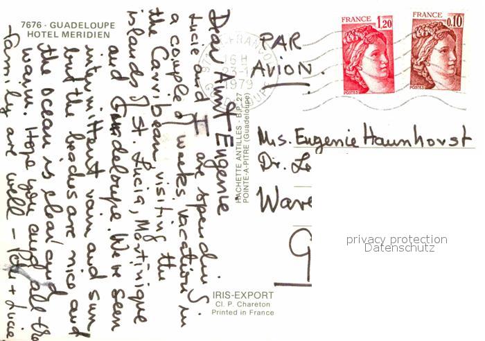 old postcard Guadeloupe Hote Meridien Swimming Pool Karibik postalisch gelaufen Erhaltung siehe scans [FriedD77]