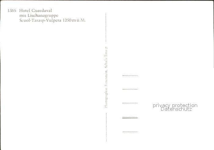 11655788 Guarda Inn Hotel Guardaval mit Lischanagruppe Scuol Tarasp Vulpera postalisch nicht gelaufen Erhaltung siehe scans KatCode: 11470100325140
