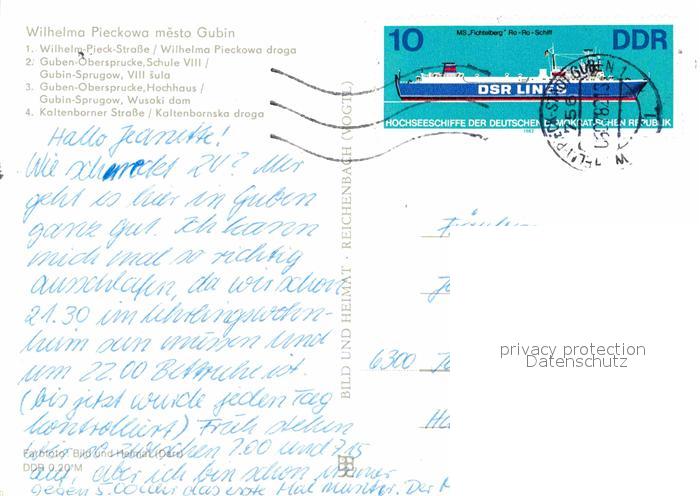 72631208 alte Postkarte Guben Wilh Pieck Str Obersprucke Schule Hochhaus Kaltenbronner Str postalisch gelaufen Erhaltung siehe scans [WerneD78] KatCode: 11110012071160
