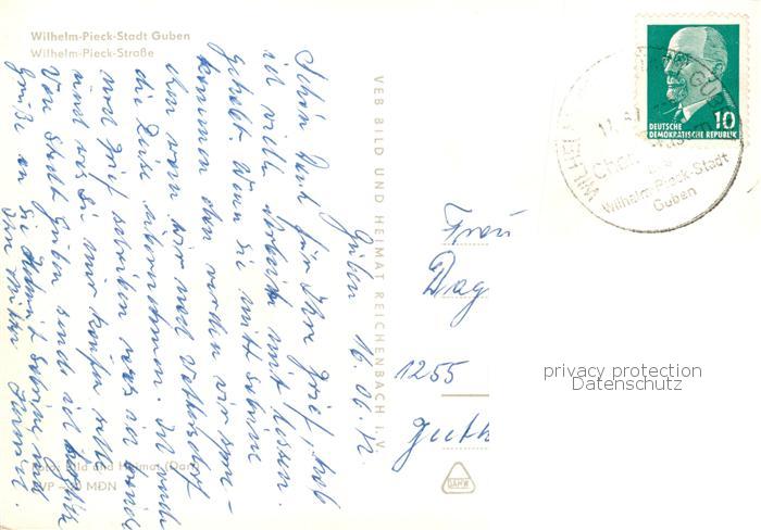 73852573 alte Postkarte Guben Wilhelm Pieck Strasse postalisch gelaufen Erhaltung siehe scans [FriedD77] KatCode: 11110012071160
