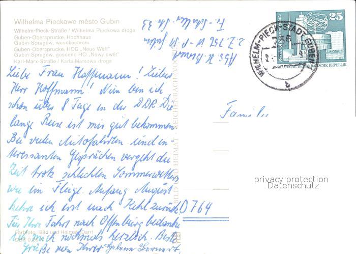 72372417 alte Postkarte Guben Wilhelm Pieck Strasse Hochhaus Neue Welt Karl Marx Strasse postalisch gelaufen Erhaltung siehe scans KatCode: 11110012071160