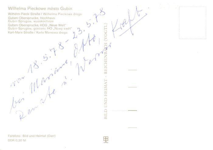 73947182 Guben Wilhelm Pieck Strasse Obersprucke Hochhaus HOG Neue Welt Karl Marx Strasse postalisch nicht gelaufen Erhaltung siehe scans [WerneD78] KatCode: 11110012071160