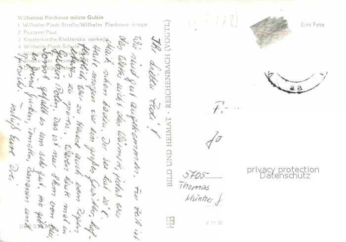 72901226 alte Postkarte Guben Wilhelm-Pieck-Strasse Postamt Klosterkirche Wilhelm-Pieck-Schule postalisch gelaufen Erhaltung siehe scans [PaolaD17] KatCode: 11110012071160