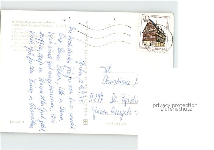 72383910 alte Postkarte Guben Wilhelm Pieck- Strasse Postamt Klosterkirche postalisch gelaufen Erhaltung siehe scans KatCode: 11110012071160