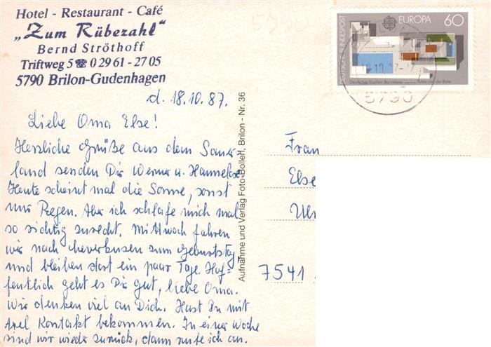 73937819 alte Postkarte Gudenhagen Hotel Restaurant Café Zum Ruebezahl postalisch gelaufen Erhaltung siehe scans [FriedD77] KatCode: 11110005958012