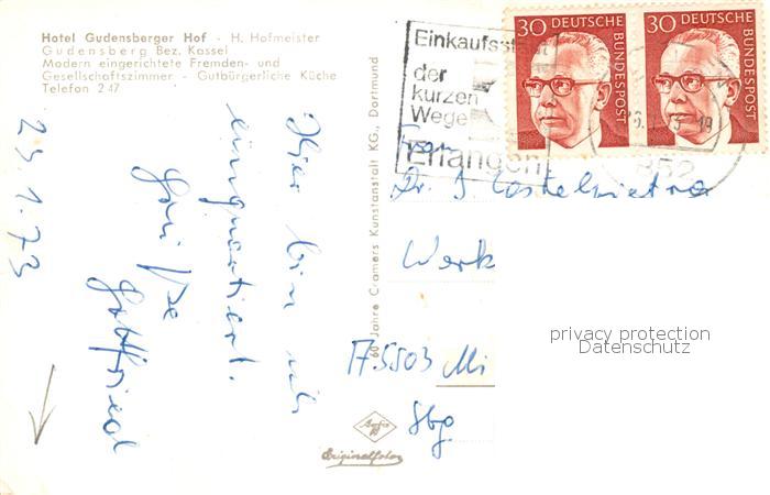 73832540 alte Postkarte Gudensberg Hotel Gudensberger Hof postalisch gelaufen Erhaltung siehe scans [WerneD78] KatCode: 11110006634007