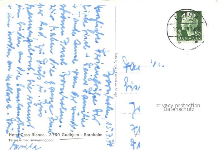 74137529 old postcard Gudhjem BORNHOLM DK Hotel Casa Blanca Terrasse med swimmingpool postalisch gelaufen Erhaltung siehe scans [WerneD78] KatCode: 11100