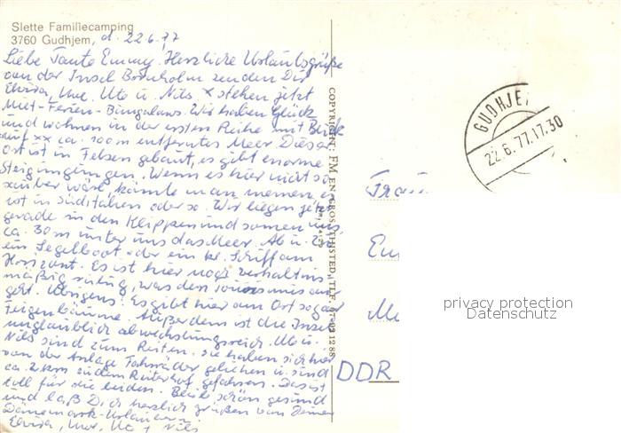 old postcard Gudhjem Fliegeraufnahme slette Familiencamping postalisch gelaufen Erhaltung siehe scans [LiesaD40]