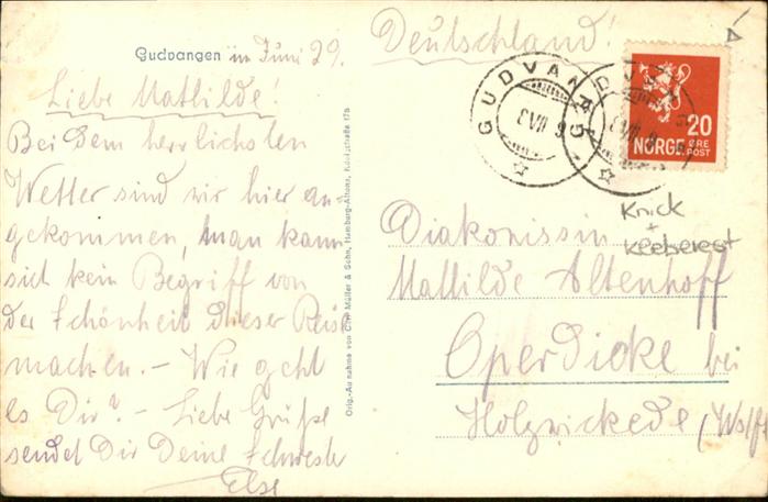 old postcard Gudvangen Norwegen postalisch gelaufen