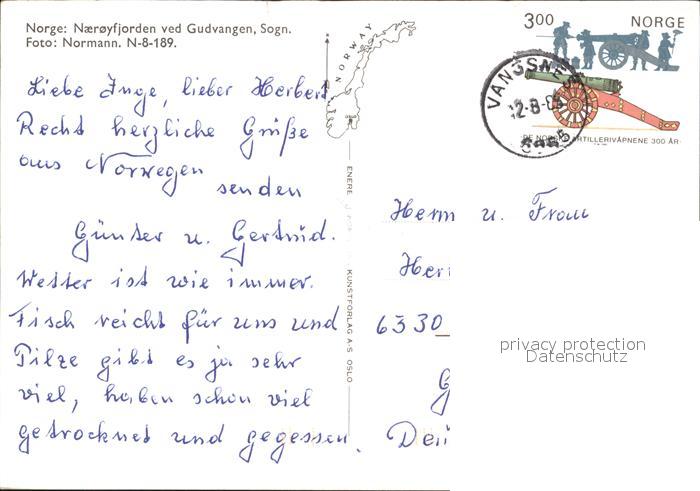 old postcard Gudvangen Norwegen Naeroyfjorden postalisch gelaufen Erhaltung siehe scans