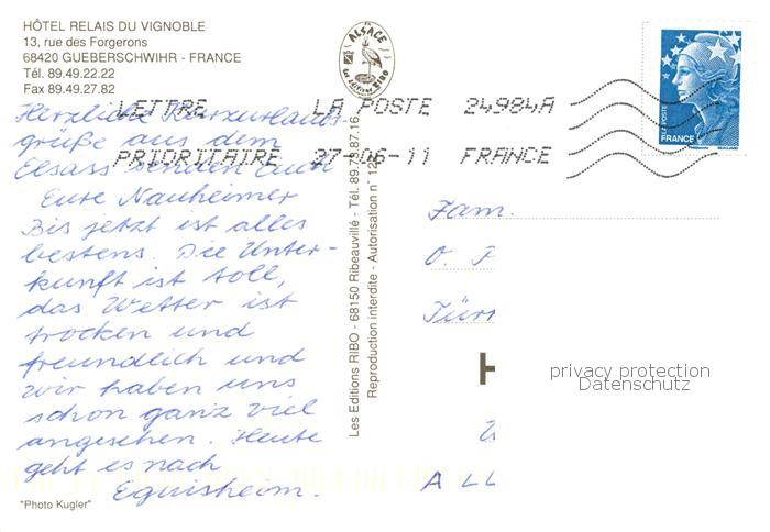 13801321 Gueberschwihr Hôtel Relais du Vignoble postalisch gelaufen Erhaltung siehe scans [FriedD77] carte postale Frie Katcode 11170068368111