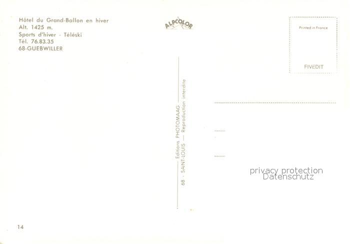 13072454 Guebwiller Elsass Hotel du Grand Ballon en hiver postalisch nicht gelaufen Erhaltung siehe scans [WerneD78] KatCode: 11170068368112