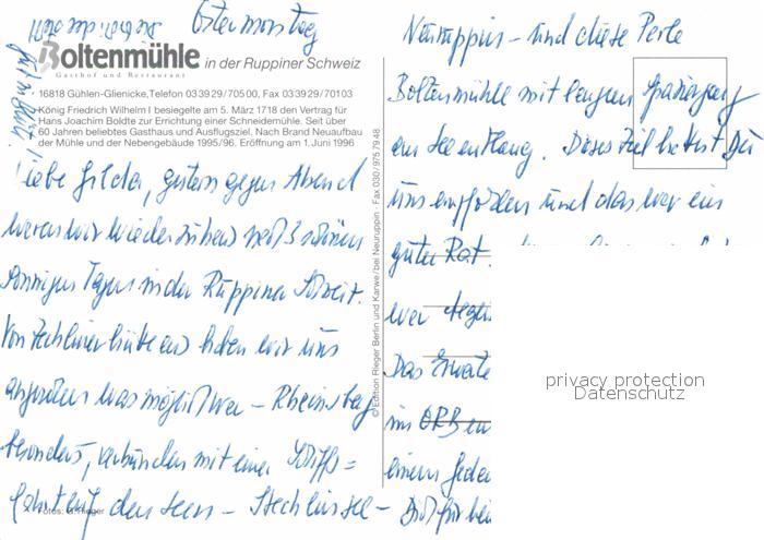 72852983 Guehlen Glienicke Boltenmuehle postalisch nicht gelaufen Erhaltung siehe scans [NatalD47] KatCode: 11110012068320